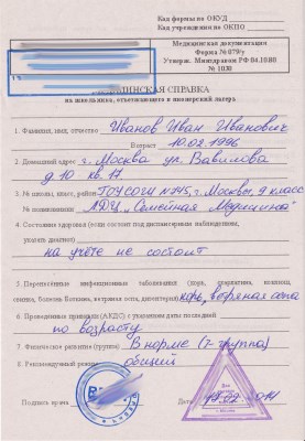 Цель указанных справок – обеспечение медперсонала лагеря информацией о состоянии здоровья прибывших на отдых детей. Это очень важно с точки зрения организации правильного режима, разработки комплекса оздоровительных мероприятий, подбора индивидуальной физической нагрузки для каждого ребёнка.